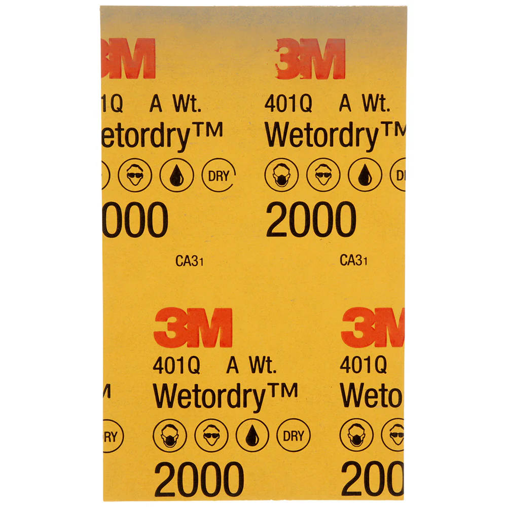 3M™ Wetordry™ Abrasive Sheet 401Q is designed for sanding applications that require a fine grit and a light touch, such as auto body wet sanding and paint finishing. It combines a durable, waterproof A-weight paper backing and 3M's fast-cutting silicon carbide mineral for consistent scratch patterns, making for easier buffing. And a range of grades up to 3000 grit allows for superior results.