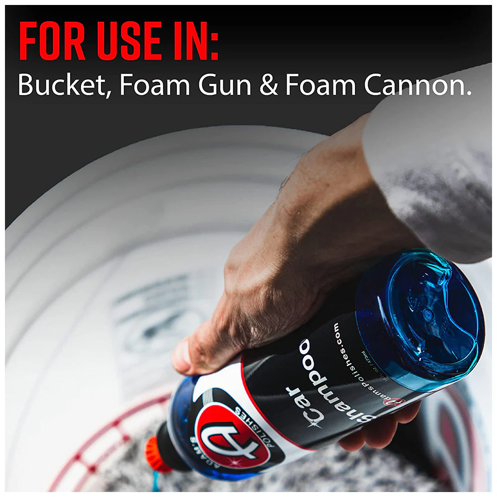 Adam's Car Wash Shampoo will pamper your finish with its advance luxurious conditioning formula. Just as regular oil changes keep your car’s inner workings healthy, regular exterior cleaning keeps your vehicle’s paint, trim, wheels and glass healthy and beautiful. Adam’s has the solution to your routine exterior maintenance, and it all starts with Adam’s Car Wash Shampoo!